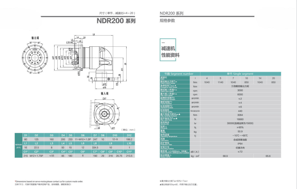 NDR200系列精密行星減速器型號(hào)尺寸與圖紙