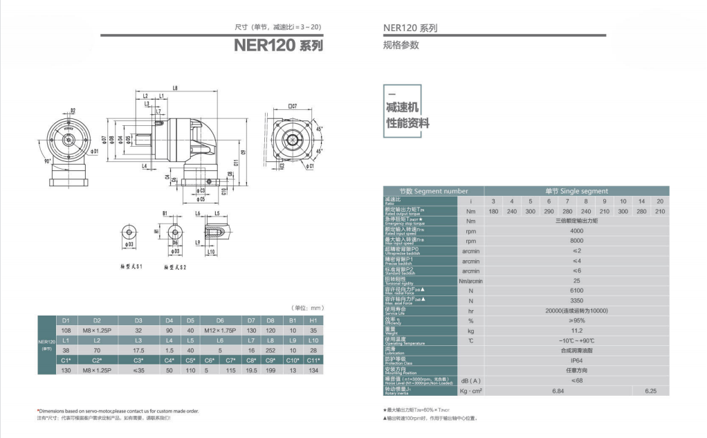 NER120系列超精密背隙行星減速機系列(P0): NER120系列精密背隙行星減速器系列(P1): NER120系列標準背隙行星減速機系列(P2):