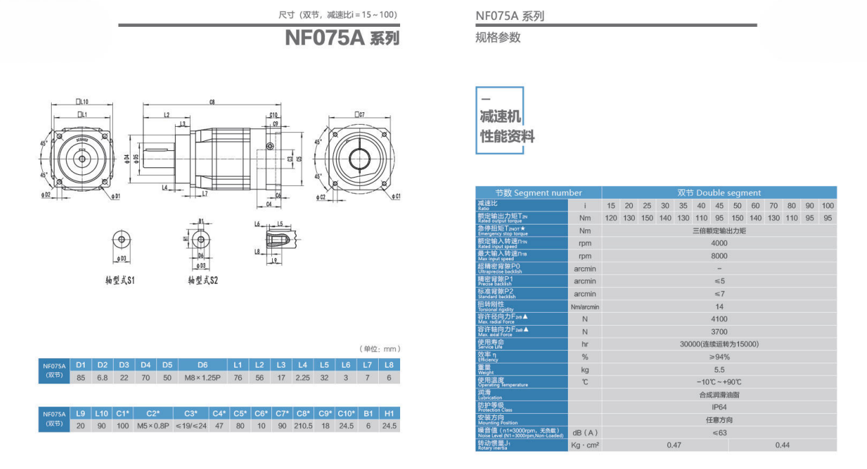 NF075A系列精密行星減速器型號尺寸與圖紙