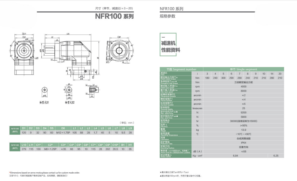 NFR100系列精密行星減速器型號尺寸與圖紙