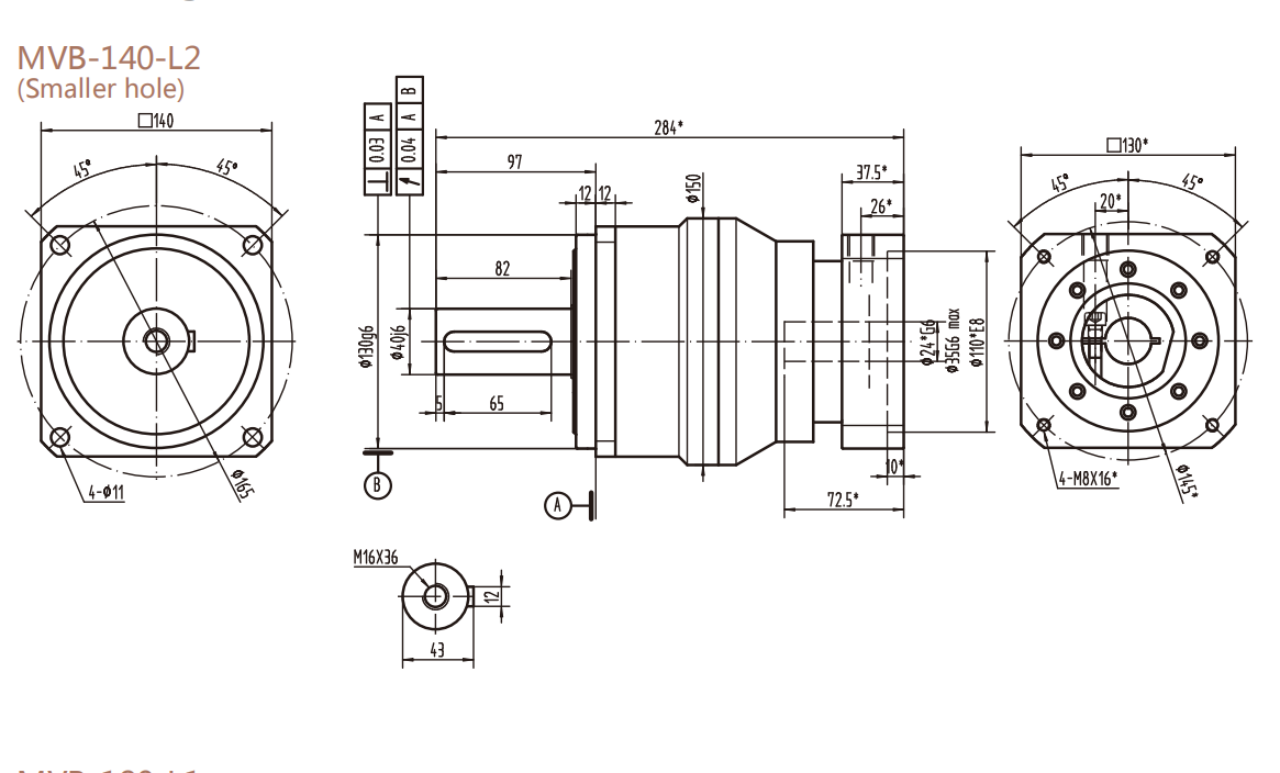 MVB-140-L2系列精密行星減速器型號(hào)尺寸與圖紙
