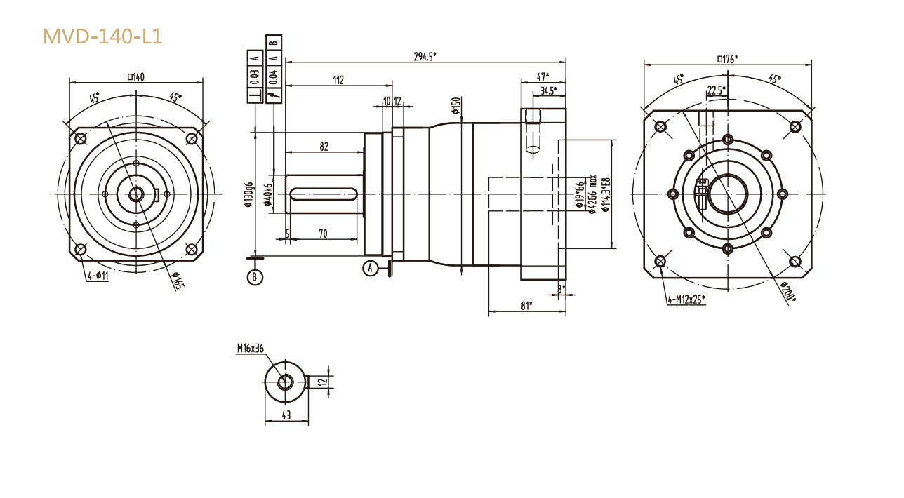 MVD-140-L1系列精密行星減速器型號(hào)尺寸與圖紙
