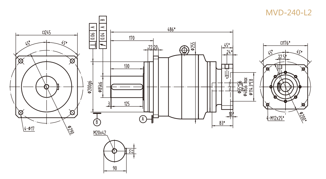 MVD-240-L2系列精密行星減速器型號(hào)尺寸與圖紙