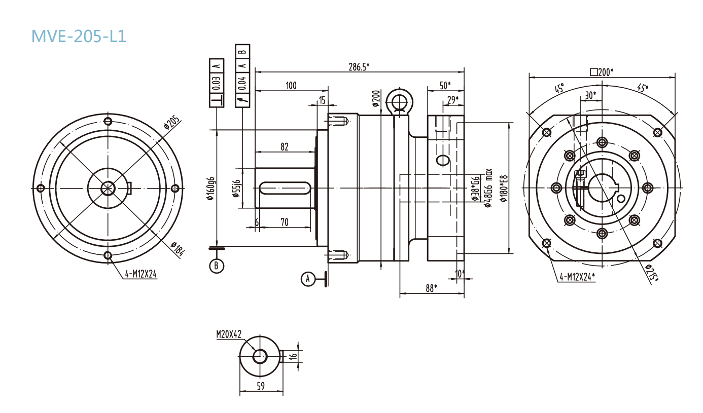 MVE-205-L1系列精密行星減速器型號尺寸與圖紙