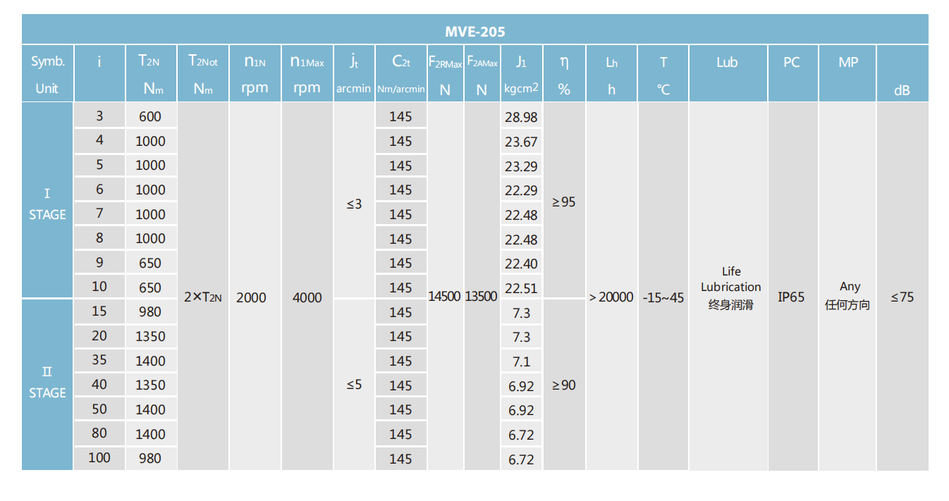 MVE-205-L1系列超精密背隙行星減速機系列(P0): MVE-205-L1系列精密背隙行星減速器系列(P1): MVE-205-L1系列標(biāo)準(zhǔn)背隙行星減速機系列(P2):