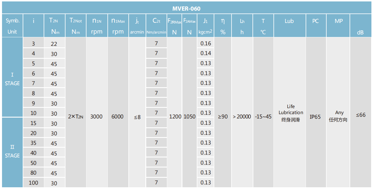 MVER-060-L1系列超精密背隙行星減速機(jī)系列(P0): MVER-060-L1系列精密背隙行星減速器系列(P1): MVER-060-L1系列標(biāo)準(zhǔn)背隙行星減速機(jī)系列(P2):