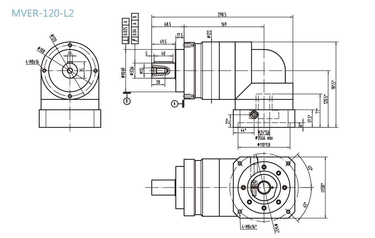 MVER-120-L2系列精密行星減速器型號尺寸與圖紙