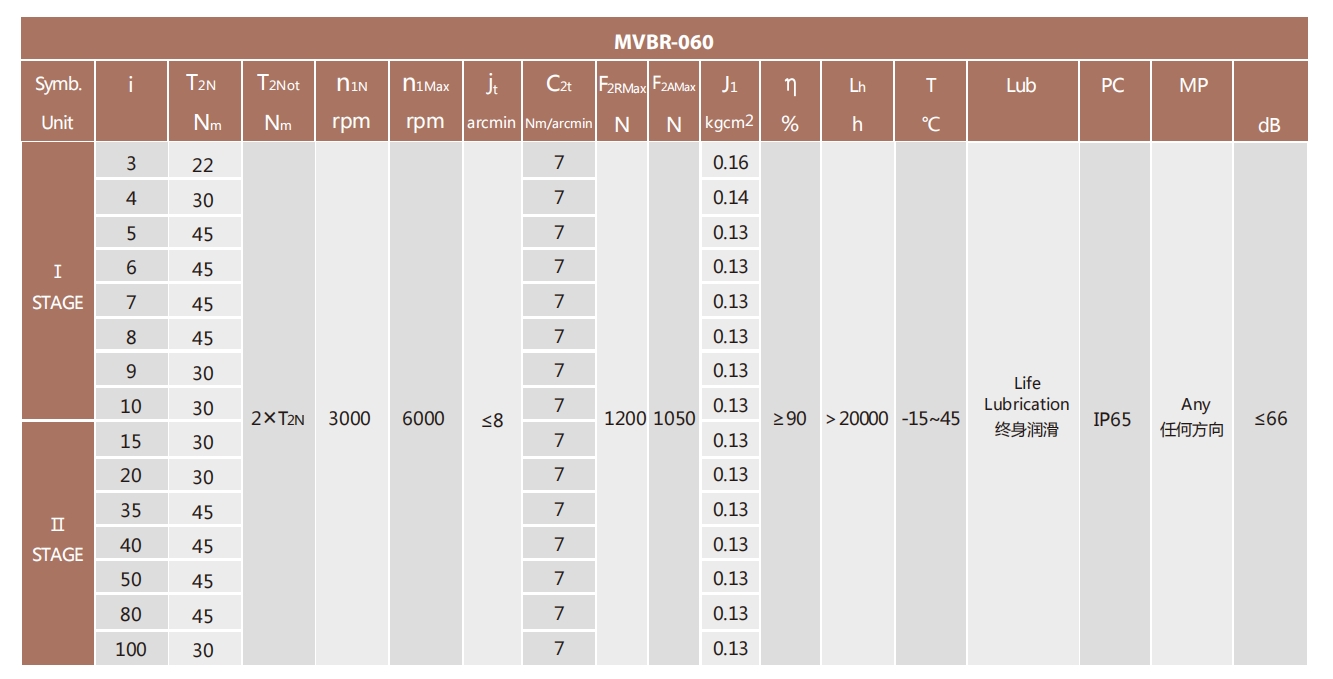 MVBR-060-L1系列超精密背隙行星減速機(jī)系列(P0): MVBR-060-L1系列精密背隙行星減速器系列(P1): MVBR-060-L1系列標(biāo)準(zhǔn)背隙行星減速機(jī)系列(P2):