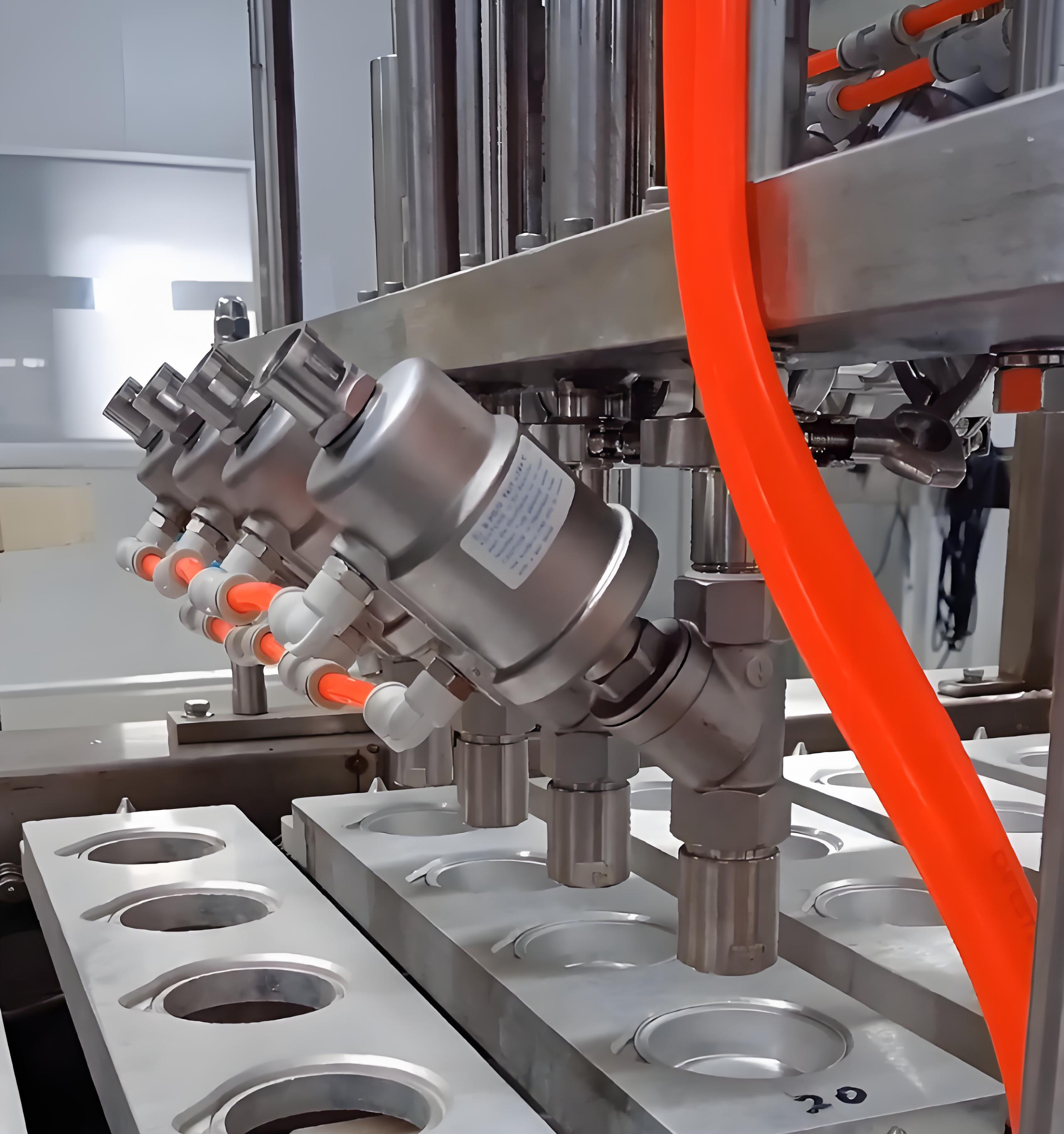 3,傳感器連接:在灌裝過程中,通常會使用傳感器來檢測食品的位置和狀態(tài)。這些傳感器與減速機和控制系統(tǒng)相連,以實現(xiàn)自動化的灌裝操作。例如,當(dāng)傳感器檢測到食品到達灌裝位置時,減速機將停止或減速灌裝,以避免過度灌裝或漏裝。