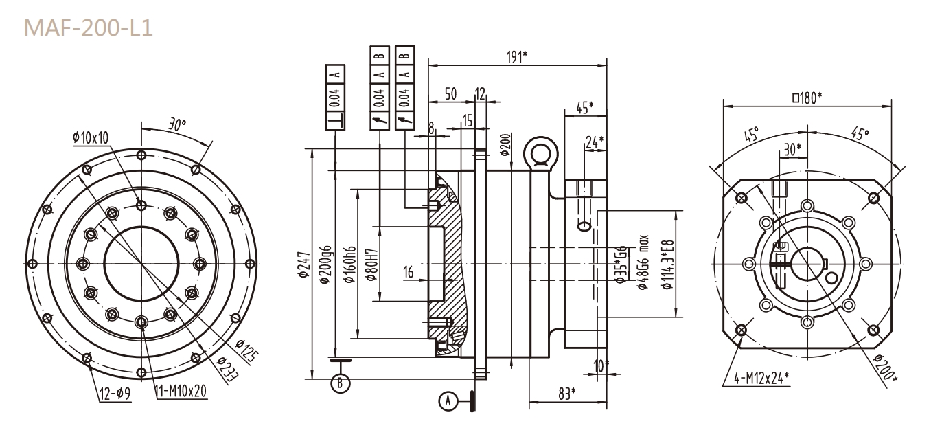 MAF-200-L1系列精密行星減速器型號(hào)尺寸與圖紙
