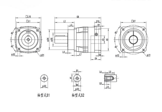 NF100系列精密行星減速器型號尺寸與圖紙