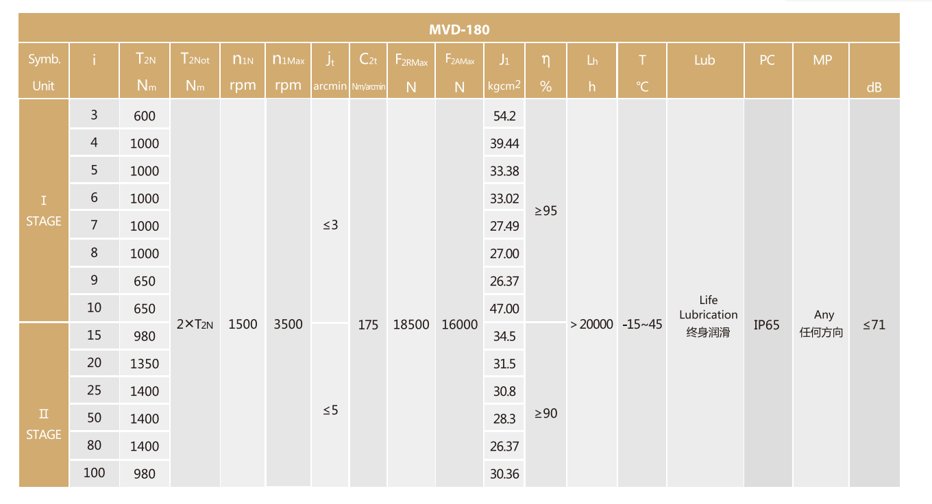 MVD-180-L2系列超精密背隙行星減速機(jī)系列(P0): MVD-180-L2系列精密背隙行星減速器系列(P1): MVD-180-L2系列標(biāo)準(zhǔn)背隙行星減速機(jī)系列(P2):