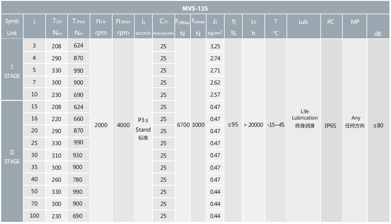 MVS-125-L2系列超精密背隙行星減速機系列(P0): MVS-125-L2系列精密背隙行星減速器系列(P1): MVS-125-L2系列標(biāo)準(zhǔn)背隙行星減速機系列(P2):