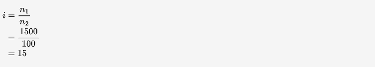 假設(shè)輸入轉(zhuǎn)速為 1500 r/min,要求輸出轉(zhuǎn)速為 100 r/min,則減速比為: