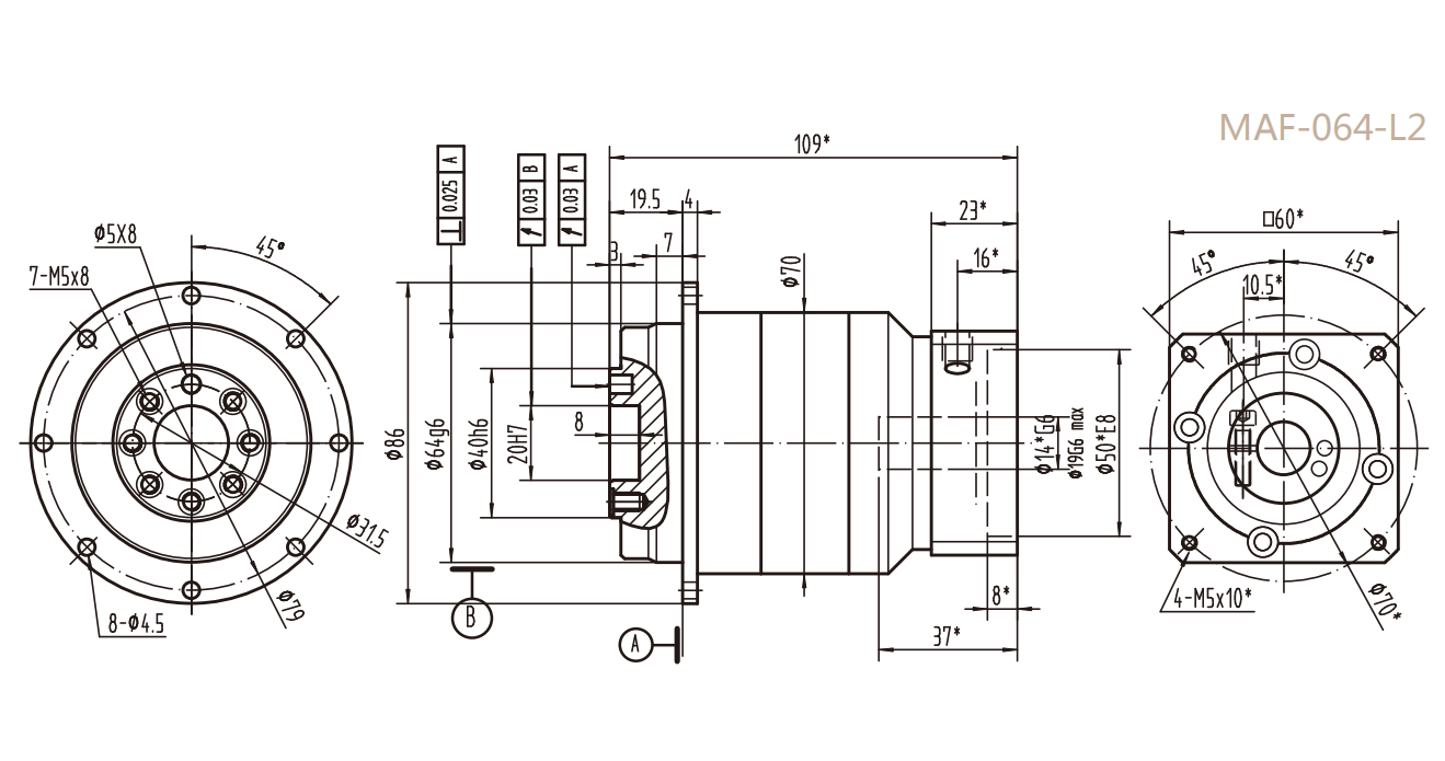 MAF-064-L2系列精密行星減速器型號尺寸與圖紙