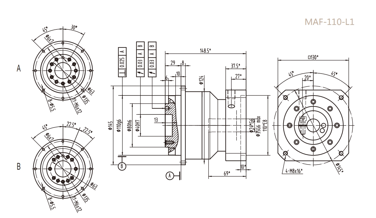 MAF-110-L1系列精密行星減速器型號尺寸與圖紙